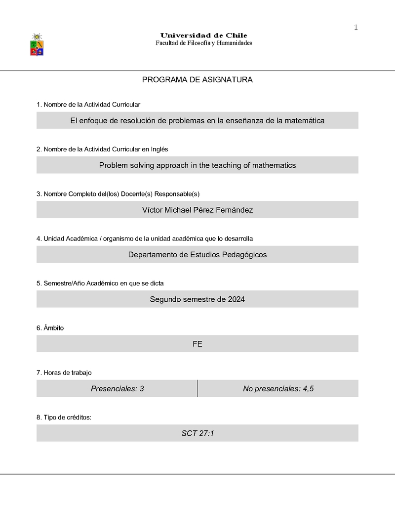 38523MMAT2-1 Curso de Mención Matemáticas 2: El enfoque de resolución de problemas en la enseñanza matemática 2024, Segundo Semestre
