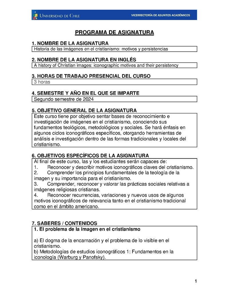 386301SE469-1 Historia de las imágenes en el cristianismo: motivos y persistencias 2024, Segundo Semestre