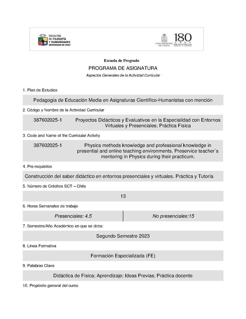 387602025-1 Proyectos Didácticos y Evaluativos en la Especialidad con Entornos Virtuales y Presenciales; Práctica Física 2024, Segundo Semestre