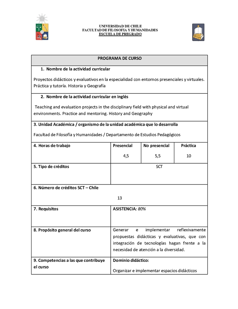 387602026-1 Proyectos Didácticos y Evaluativos en la Especialidad con Entornos Virtuales y Presenciales; Práctica Historia y Geografía 2024, Segundo Semestre