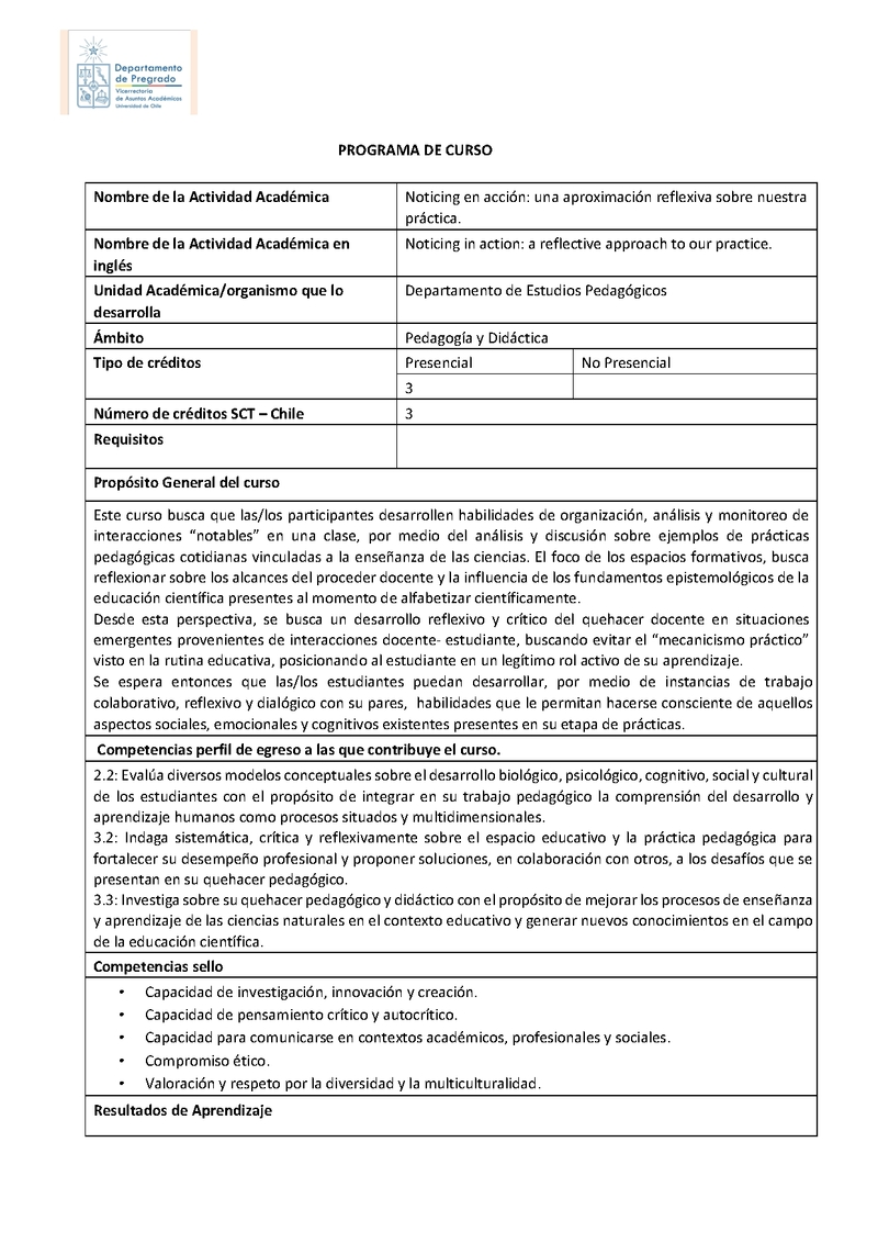 F0281054-1 Electivo: "El Arte del Noticing: desarrollando una mirada reflexiva y crítica en la enseñanza de las Ciencias Naturales" 2024, Segundo Semestre