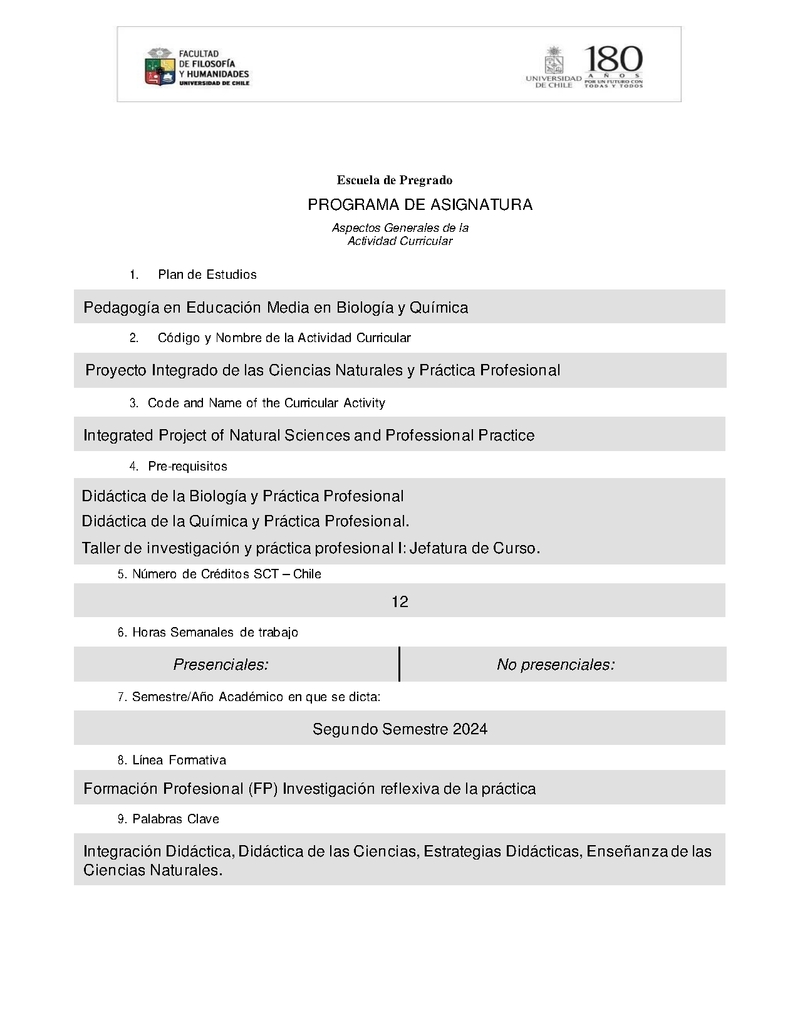 F52101048-1 Proyecto Integrado de las Ciencias Naturales y Práctica Profesional 2024, Segundo Semestre