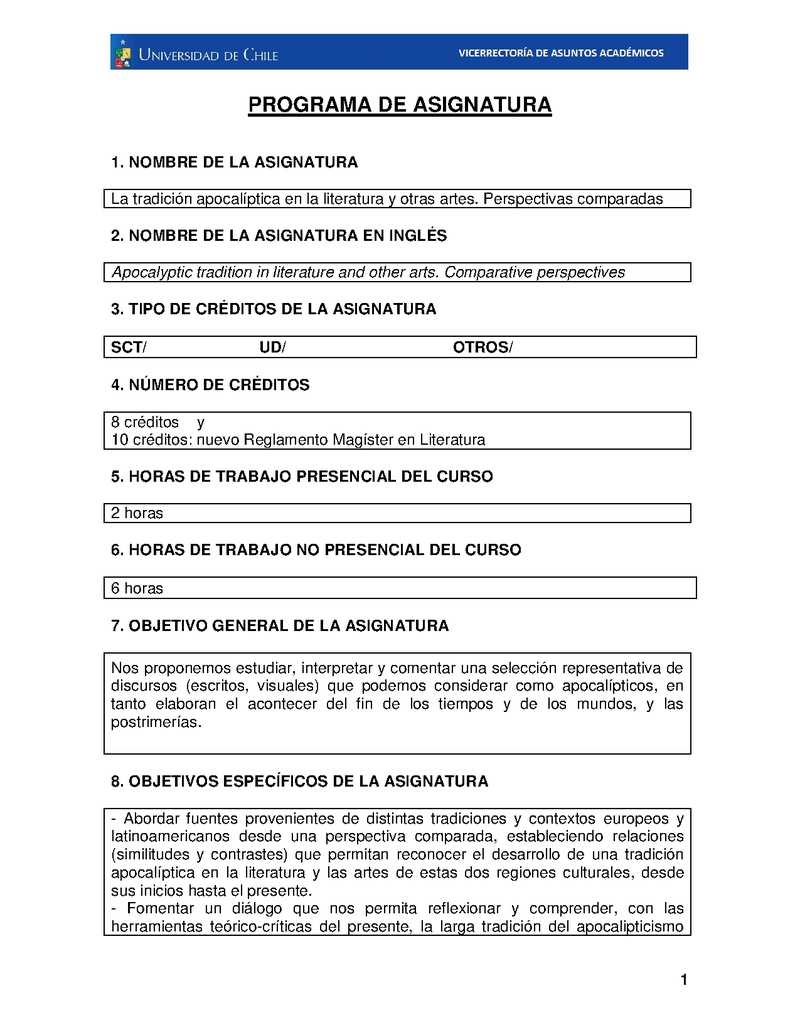 FH150819-1 La tradición apocalíptica en la literatura y otras artes. Perspectivas comparadas 2024, Segundo Semestre