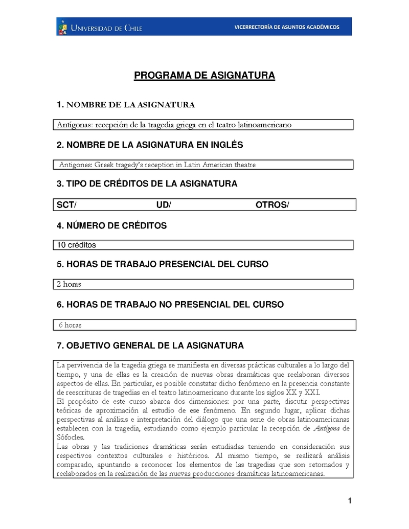 FH150823-1 Antígonas: recepción de la tragedia griega en el teatro latinoamericano 2024, Segundo Semestre
