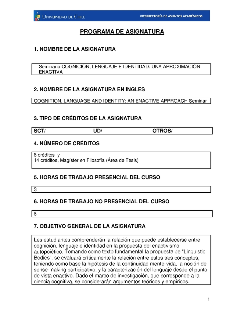 FH150854-1 Seminario: Cognición, lenguaje e identidad: una aproximación enactiva 2024, Segundo Semestre