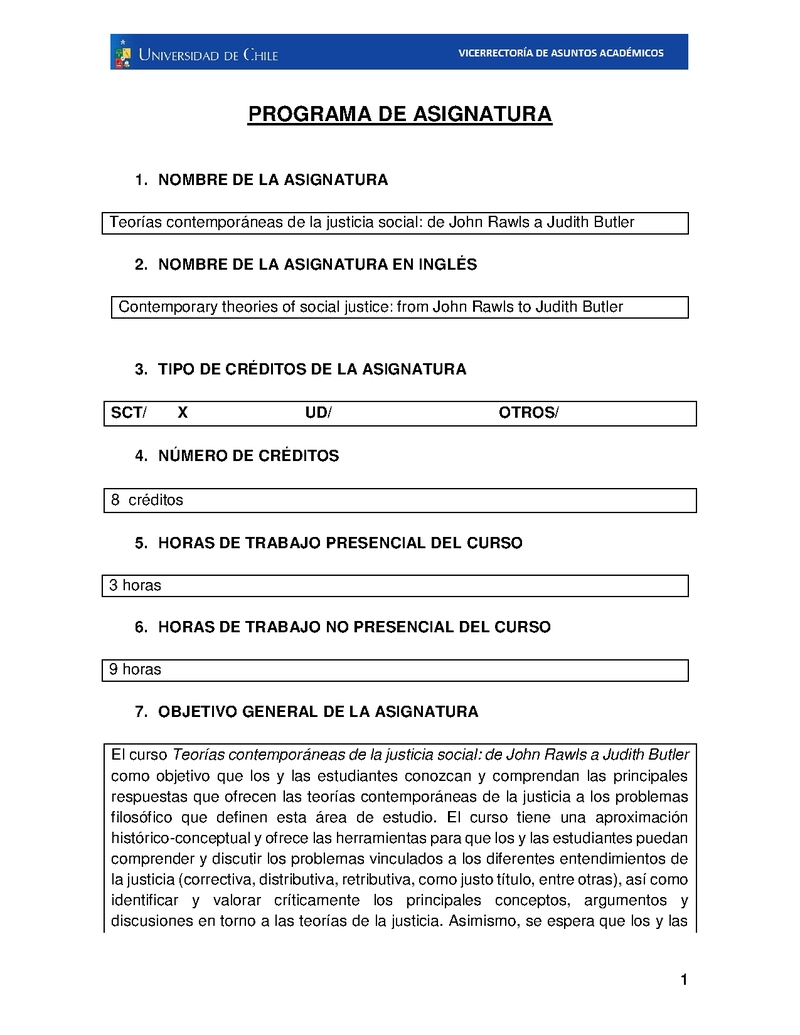 FH150886-1 Teorías contemporáneas de la justicia social: de John Rawls a Judith Butler 2024, Segundo Semestre