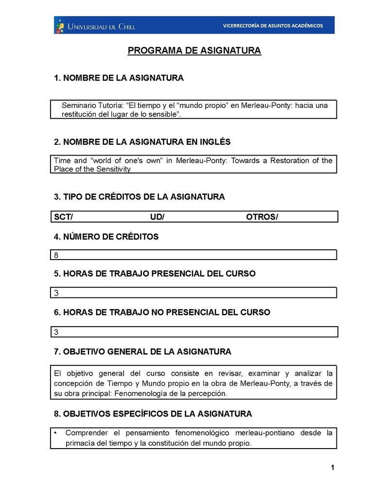 FH150898-1 Tutoría: El tiempo y el "mundo propio" en Merleau-Ponty: hacia una restitución del lugar de lo sensible. 2024, Segundo Semestre