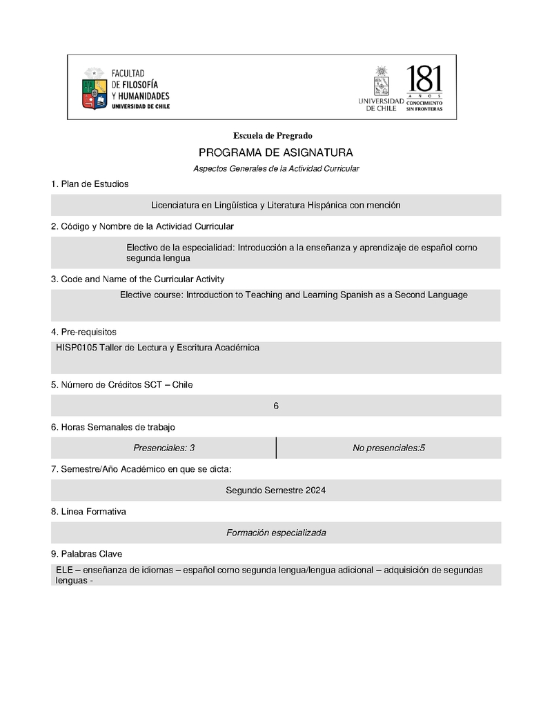 HISPEA026-1 Introducción a la enseñanza y el aprendizaje de español como segunda lengua 2024, Segundo Semestre