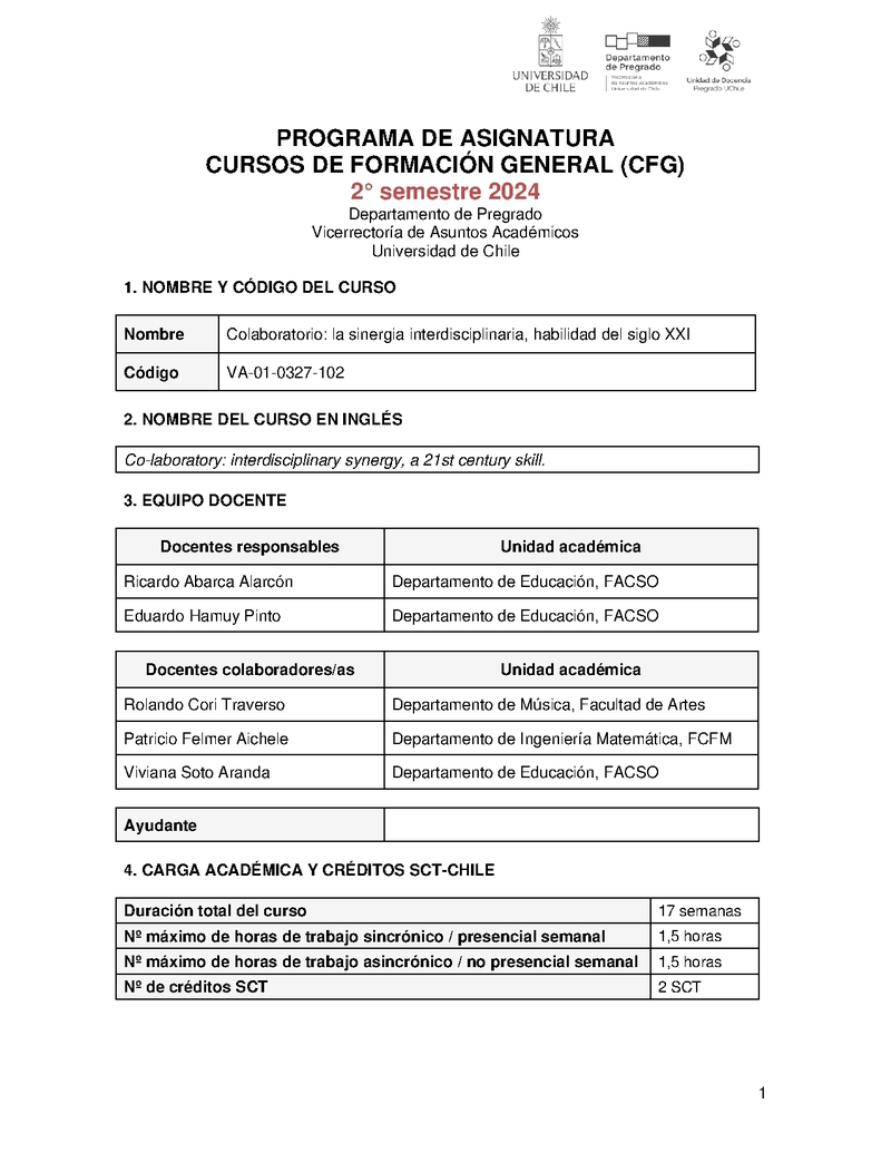 VA-01-0327-102-1 Colaboratorio: la sinergia interdisciplinaria, habilidad del siglo XXI 2024, Segundo Semestre