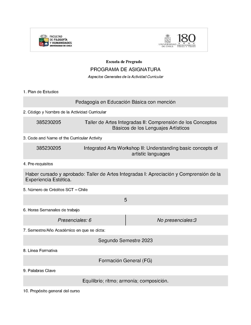 385230205-1 Taller de Artes Integradas II: Comprensión de los Conceptos Básicos de los Lenguajes Artísticos 2025, Segundo Semestre