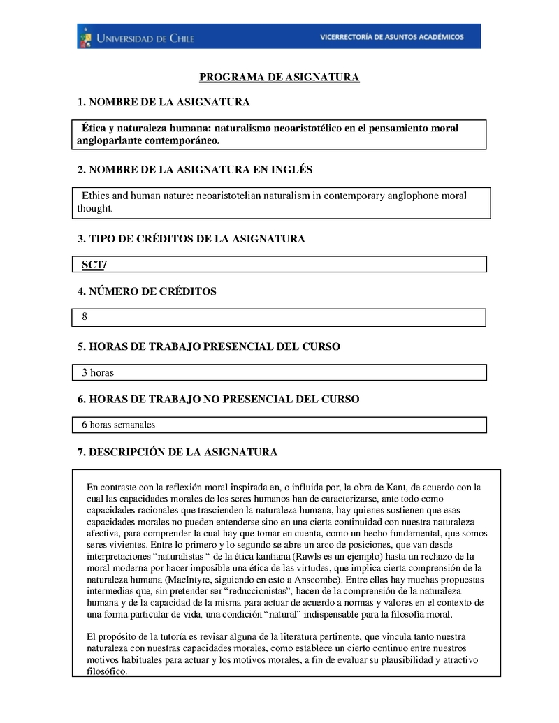 FH-DFIL-0048-1 Tutoría: Ética y naturaleza humana: naturalismo neoaristotélico en el pensamiento moral angloparlante contemporáneo. 2025, Segundo Semestre