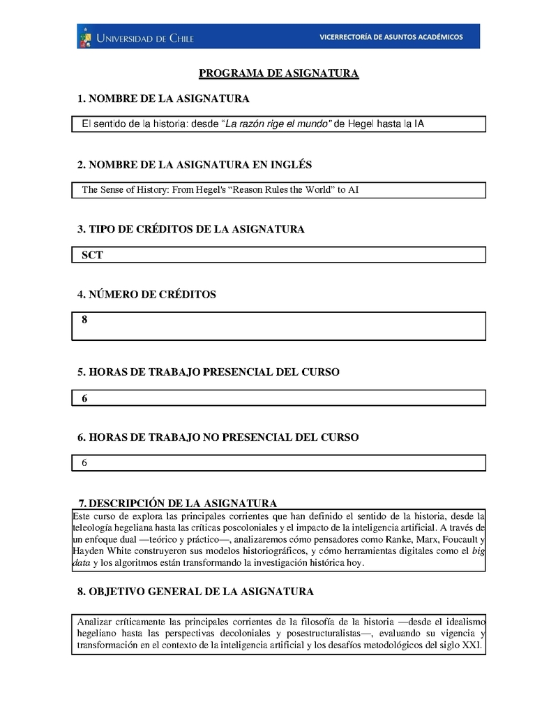 FH-DHIST-022-1 El sentido de la historia: desde “La razón rige el mundo" de Hegel hasta la IA 2025, Segundo Semestre