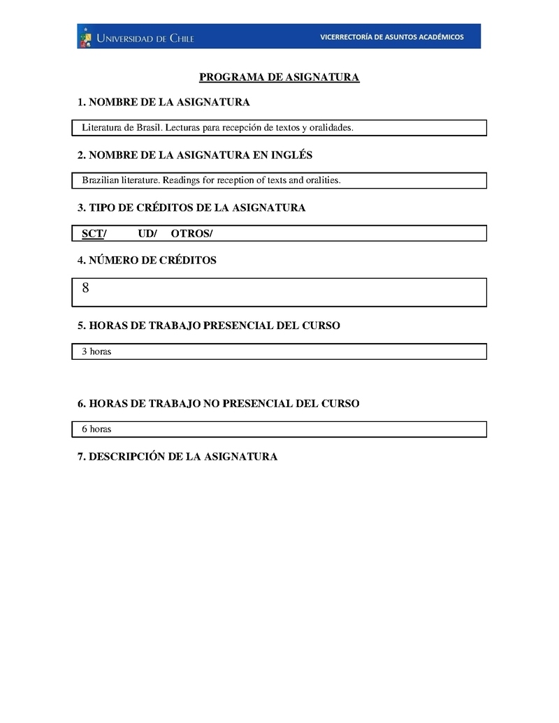 FH-DLIT-0025-1 Literatura de Brasil. Lecturas para recepción de textos y oralidades 2025, Segundo Semestre