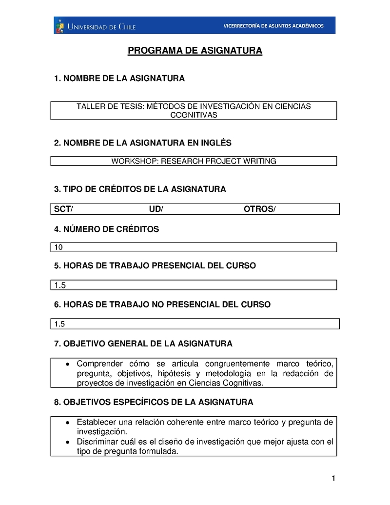 FH-MEC004-1 Taller de Tesis: Métodos de Investigación en Ciencias Cognitivas 2025, Segundo Semestre