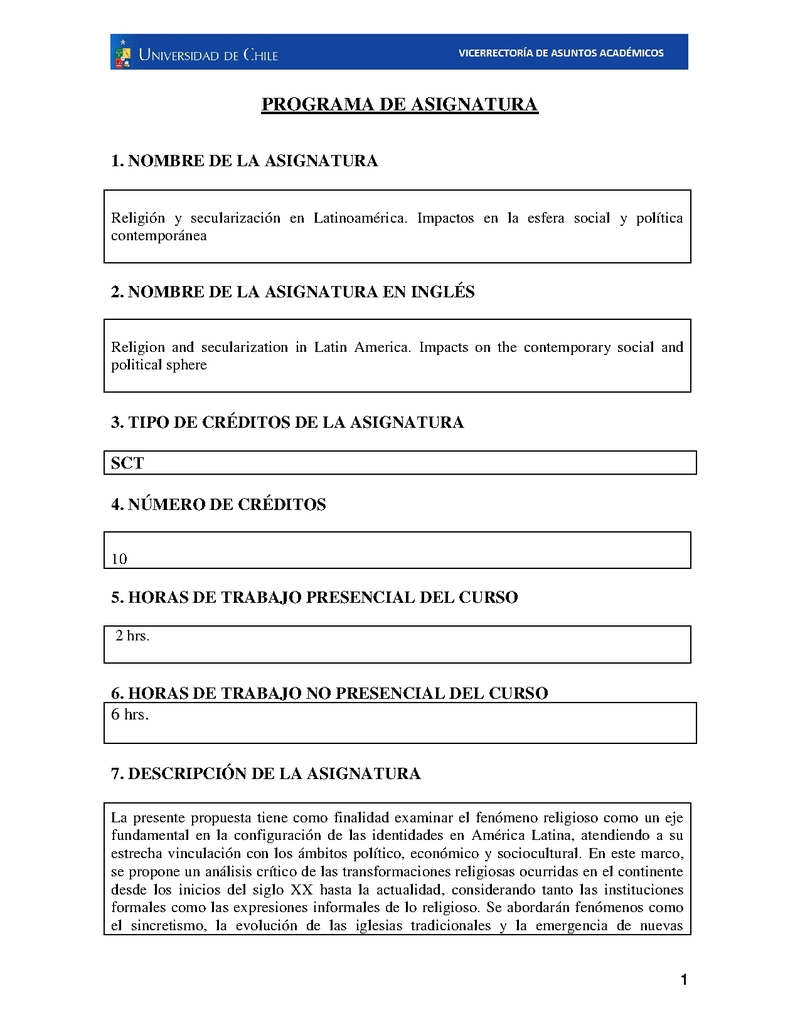 FH-MELA-026-1 Religión y secularización en Latinoamérica. Impactos en la esfera social y política contemporánea 2025, Segundo Semestre