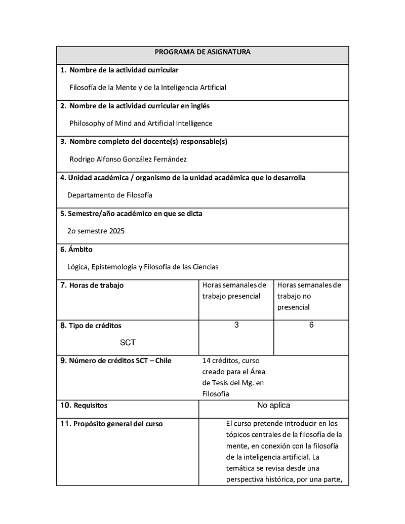 FH-MFIL-0060-1 Filosofía de la Mente y de la Inteligencia Artificial 2025, Segundo Semestre
