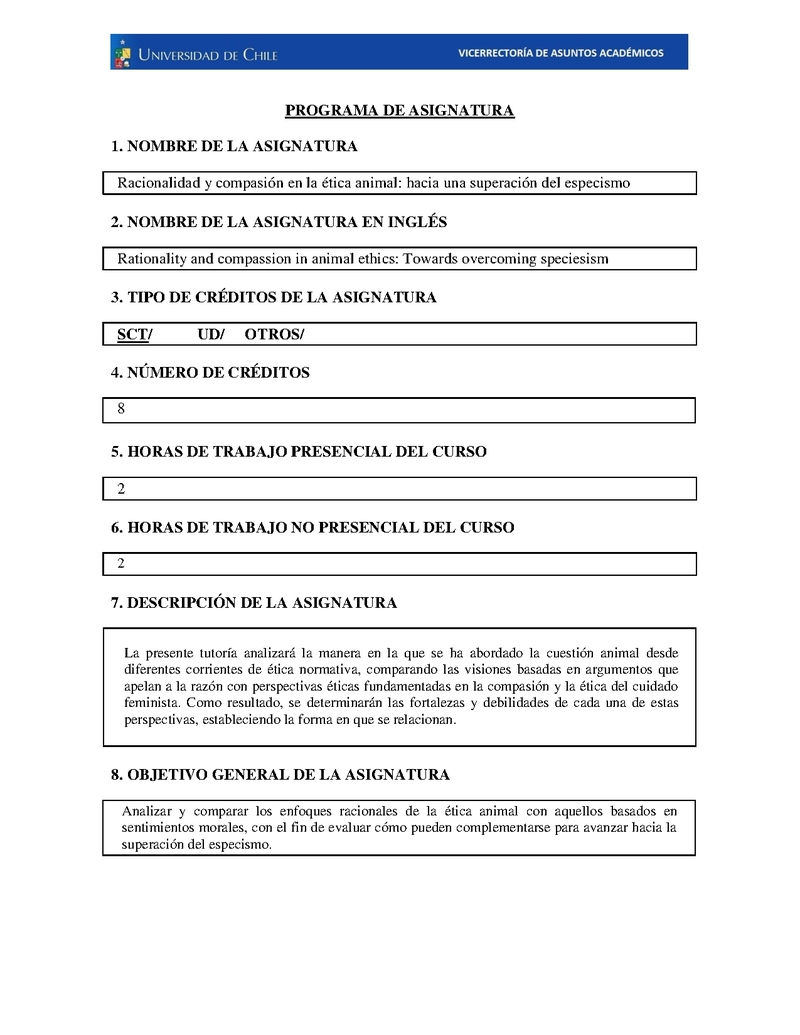 FH-MFIL-0070-1 Tutoría: "Racionalidad y compasión en la ética animal: hacia una superación del especismo" 2025, Segundo Semestre