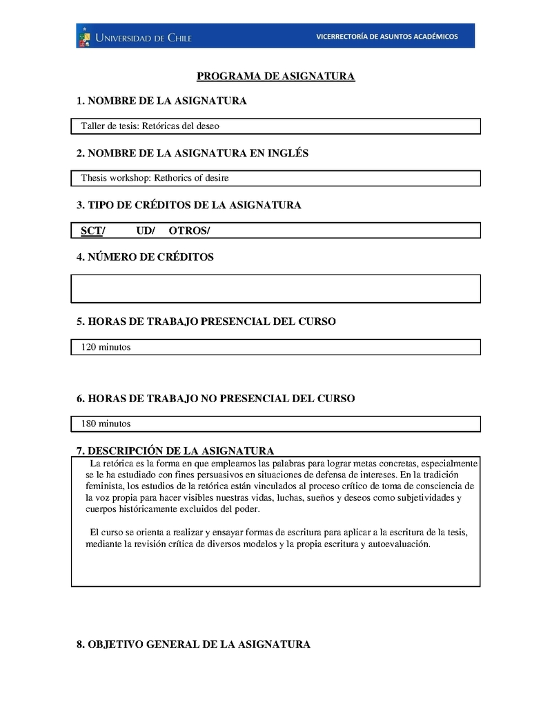 FH-MGEN-012-1 Taller de Escritura Académica (Taller de Tesis: Retóricas del deseo) 2025, Segundo Semestre
