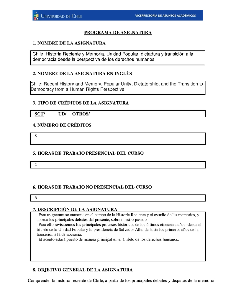 FH-MHIST-0017-1 Chile: Historia Reciente y memoria. Unidad Popular, dictadura y transición a la democracia desde la perspectiva de los derechos humanos 2025, Segundo Semestre