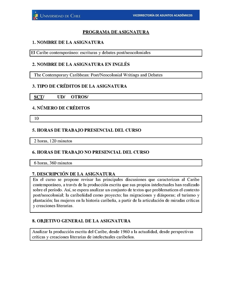 FH-MLIT-0031-1 El Caribe contemporáneo: escrituras y debates post/neocoloniales 2025, Segundo Semestre