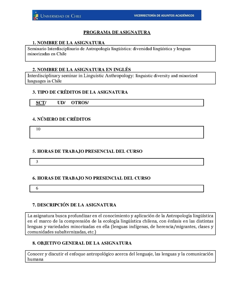 FH150883-1 Seminario Interdisciplinario de Antropología lingüística: diversidad lingüística y lenguas minorizadas en Chile 2025, Segundo Semestre