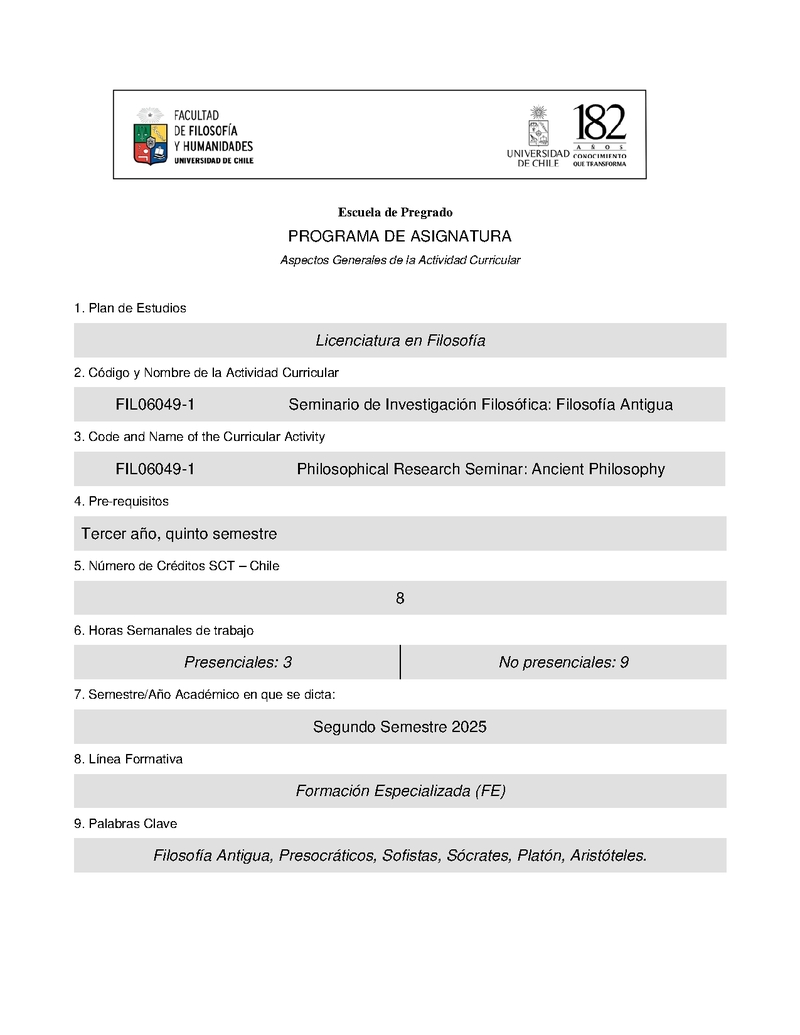 FIL06049-1 Seminario de Investigación Filosófica: "Filosofía Antigua" 2025, Segundo Semestre