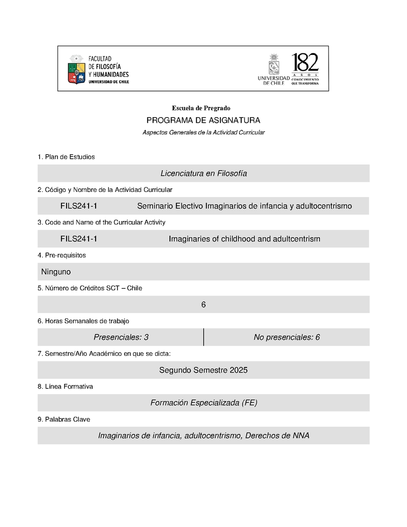 FILS241-1 Seminario Electivo: Imaginarios de Infancias y adultocentrismo 2025, Segundo Semestre