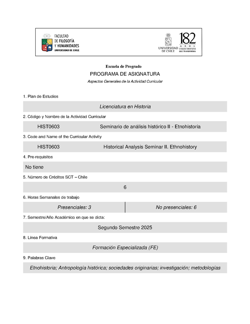 HIST0601-3 Taller de Formulación de Proyectos para el Seminario de Grado 2025, Segundo Semestre