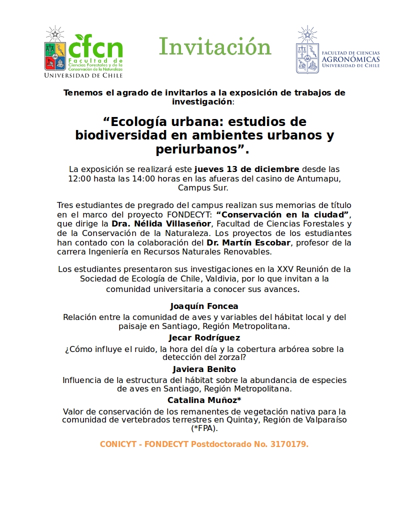 “Ecología urbana: estudios de biodiversidad en ambientes urbanos y periurbanos”. 3