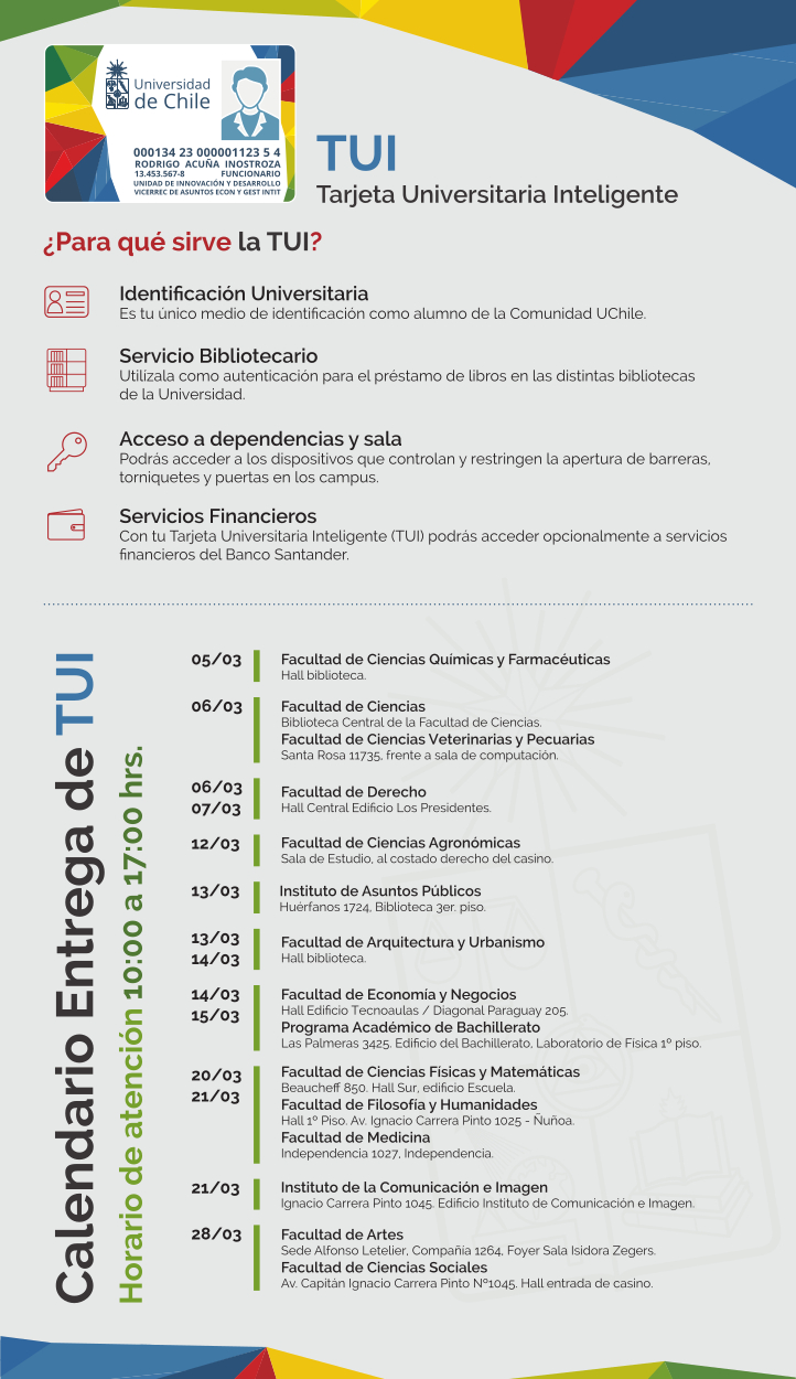 Se les comunica que mañana el Banco Santander, en la Facultad de Ciencias Forestales tendrá un stand para entregar las TUI de Mechones (y a los que solicitaron la TUI por perdida o robo), este jueves 7, el horario es de 10:00 a 17:00. Este cambio lo realizó el banco a ultimo minuto y espero que no les cause problema.