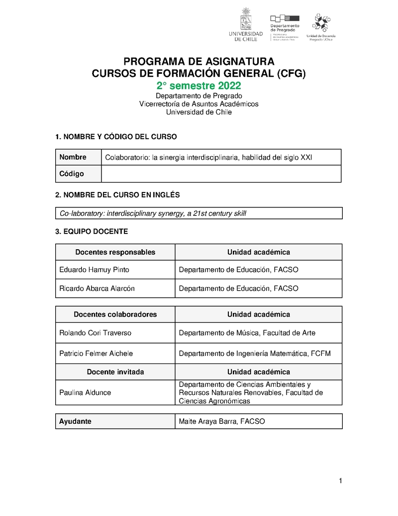 VA-01-0327-102-1 Colaboratorio: la Sinergia Interdisciplinaria, Habilidad del Siglo XXI 2022, Segundo Semestre