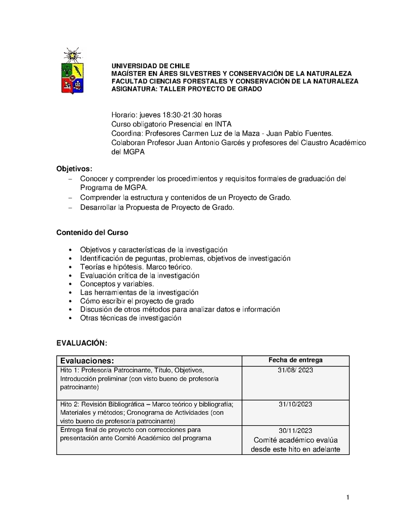 Institución Facultad de Ciencias Forestales y Conservación de la Naturaleza Facultad de Ciencias Forestales y Conservación de la Naturaleza