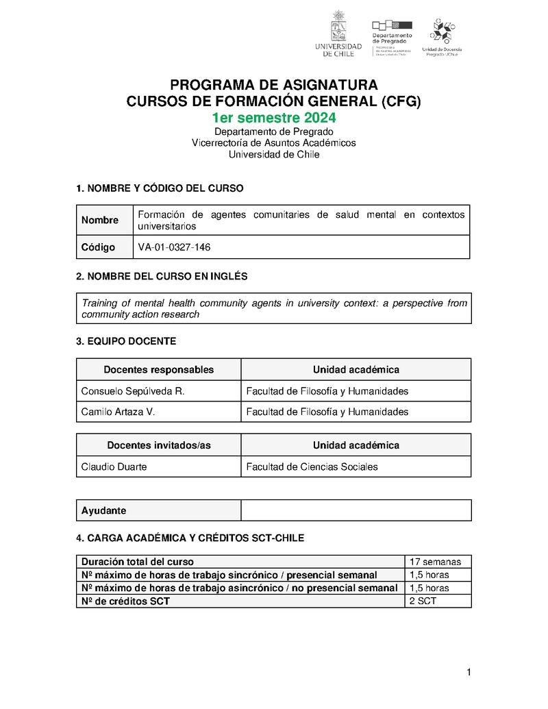 VA-01-0327-146-1 Formación de agentes comunitaries de salud mental en contextos universitarios 2024, Primer Semestre