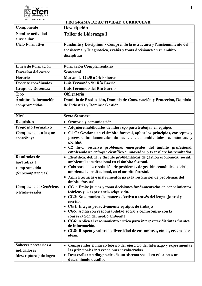| Descripción | Estimadas y estimados estudiantes, adjunto el programa del curso. Cualquier duda que tengan será resuelta en clases. Cordiales saludos, Luis Fernando del Río |