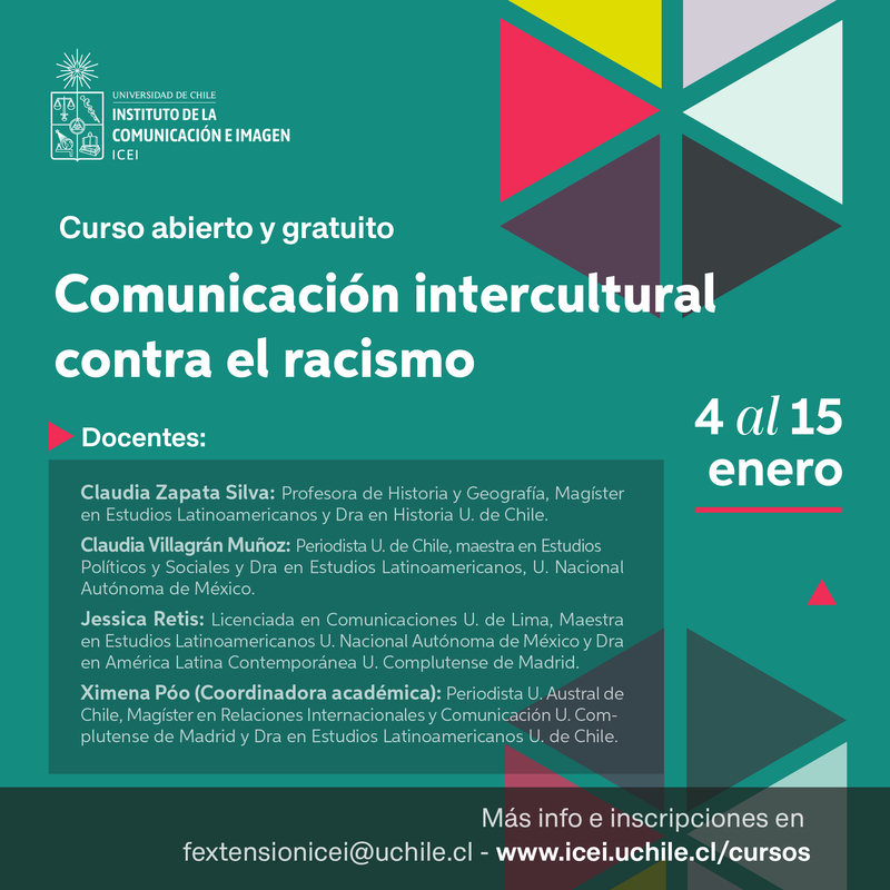 | Descripción | Programa del curso online gratuito "Comunicación Intercultural contra el Racismo" Enero 2021. Instituto de la Comunicación e Imagen de la Universidad de Chile. |