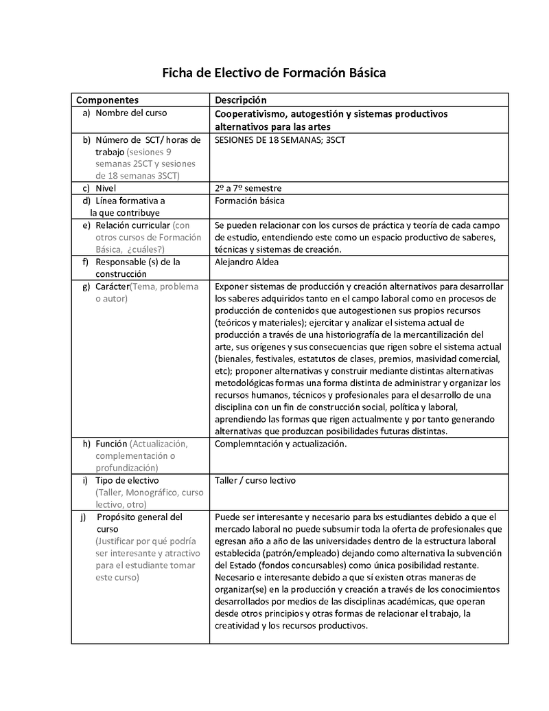 EFB38-1 Cooperativismo, autogestión y sistemas productivos alternativos para las artes 2021, Segundo Semestre