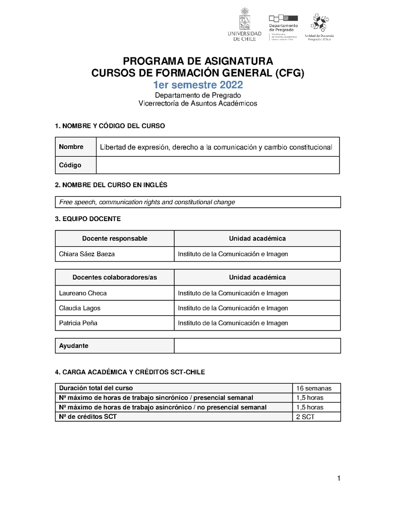 VA-01-0327-106-1 Libertad de Expresión, Derecho a la Comunicación y Cambio Constitucional 2022, Primer Semestre