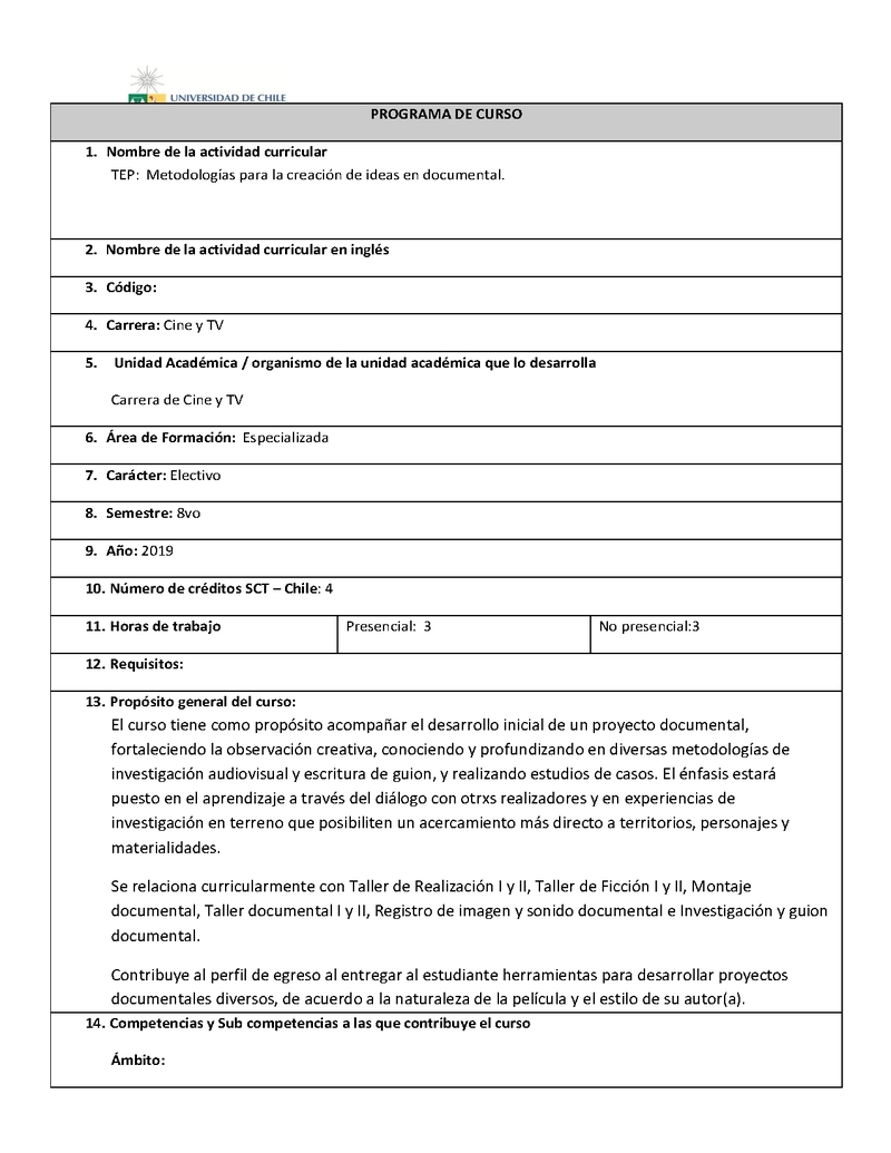 CYTVI81-1 Taller Electivo de Profundización: Transficciones y otras metodologías para la creación del documental 2022, Segundo Semestre