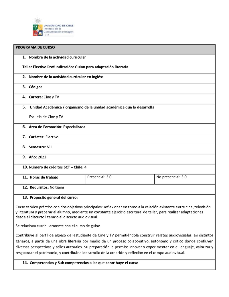 CYTVN51-1 Taller electivo de profundización: Guion y adaptación: escribir desde otras fuentes 2023, Primer Semestre