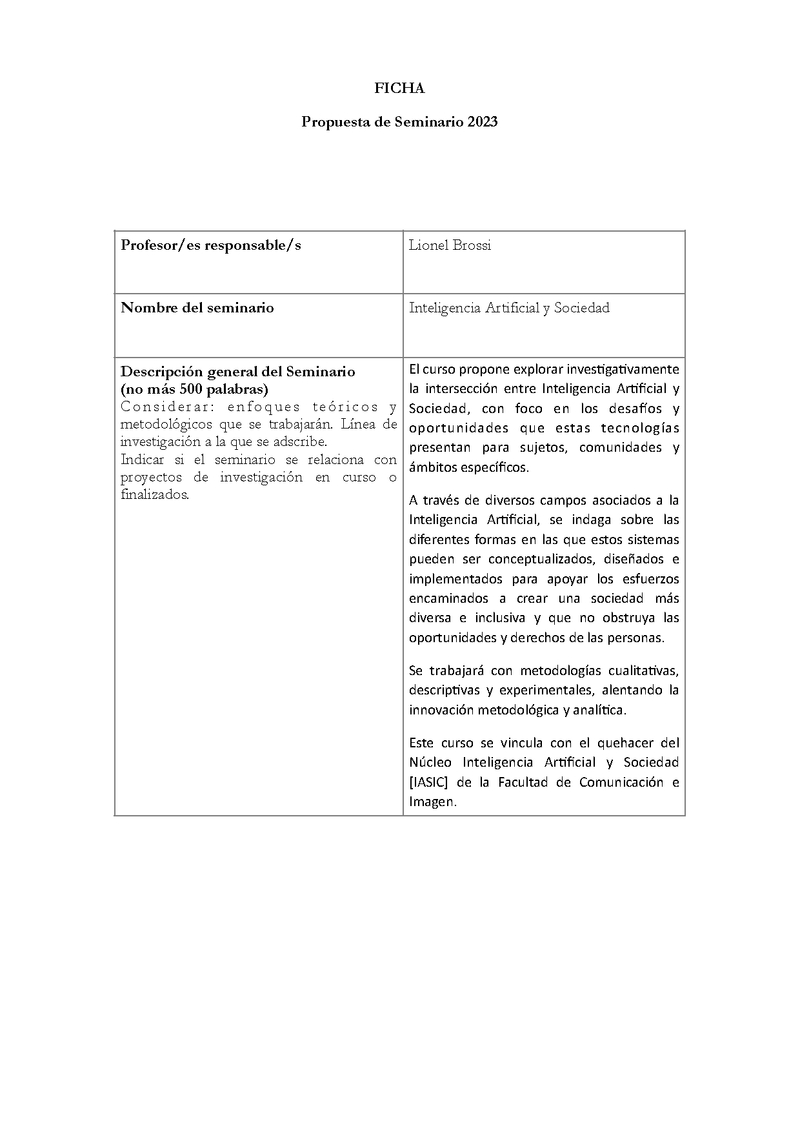 | Descripción | El curso propone explorar investigativamente la intersección entre Inteligencia Artificial y Sociedad, con foco en los desafíos y oportunidades que estas tecnologías presentan para sujetos, comunidades y ámbitos específicos. Algunas preguntas posibles para explorar en el curso: ¿Qué desafíos y oportunidades traen para la sociedad los sistemas de Inteligencia Artificial que están detrás de tecnologías como CHAT GPT, realidad Virtual, videojuegos con AI, algoritmos de redes sociales, asistentes de voz, entre otras? ¿Tienen implicancias para la inclusión social? ¿Cómo pueden estas tecnologías afectar a comunidades como niños, niñas y jóvenes, LGBTIQA+, adultos mayores, personas de entornos rurales? ¿Qué se espera para un futuro donde la IA va a permear cada vez más la vida cotidiana en todos sus ámbitos? ¿Cómo van a cambiar o están cambiando las comunicaciones con la evolución de la IA? ¿Qué nuevos ámbitos de estudio pueden generarse en relación a la IA? * El curso habilita espacios para investigar sobre temas experimentales sobre música, cine, arte, realidad expandida y sus cruces con la Inteligencia Artificial. |