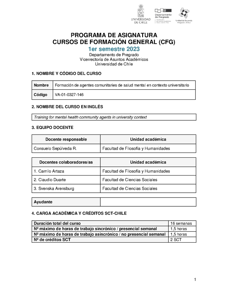 VA-01-0327-146-1 Formación de agentes comunitaries de salud mental en contextos universitarios 2023, Primer Semestre