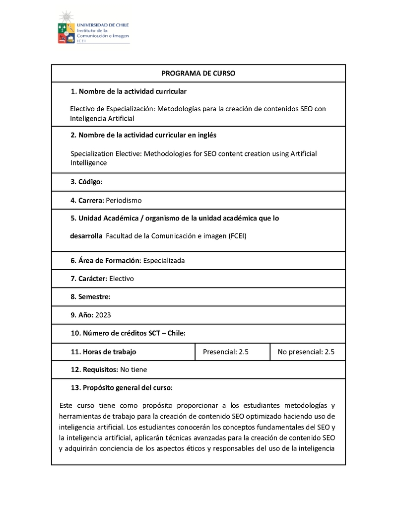 ESPE28-1 Electivo de Especialización: Metodologías para la creación de contenidos SEO con Inteligencia Artificial 2023, Segundo Semestre