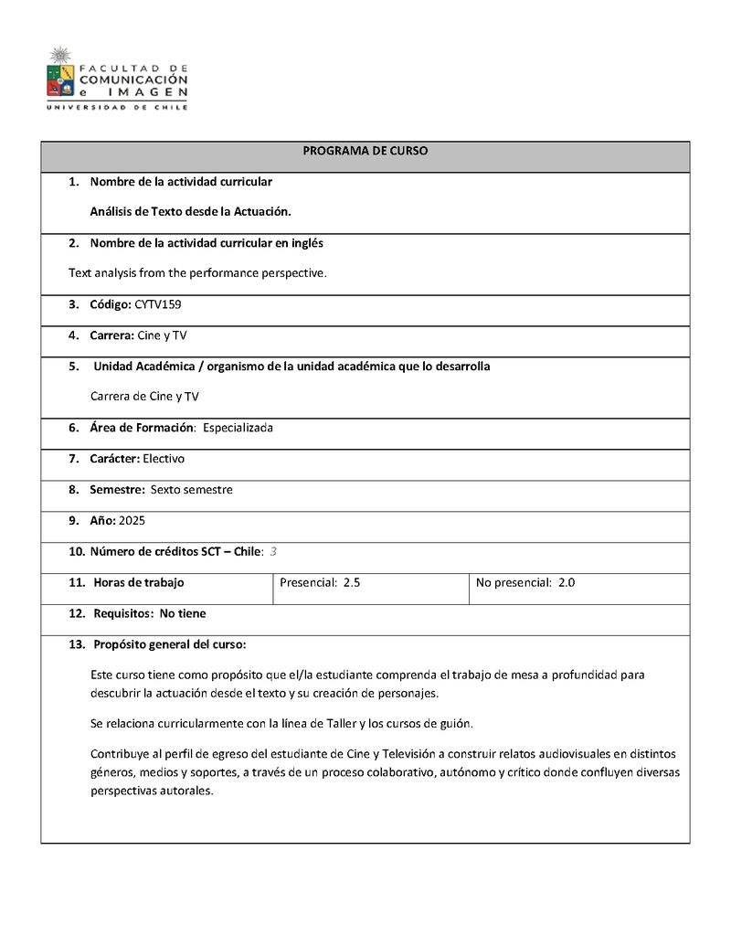 CYTVI59-1 Electivo de Formación complementaria: Análisis de texto desde la actuación 2025, Segundo Semestre