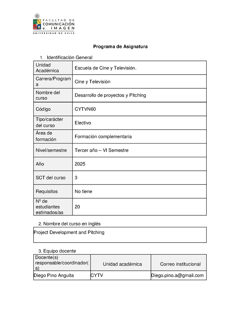 CYTVN60-1 Electivo de Formación Complementaria: Desarrollo de Proyectos: desde la Escritura hasta el Pitching 2025, Segundo Semestre