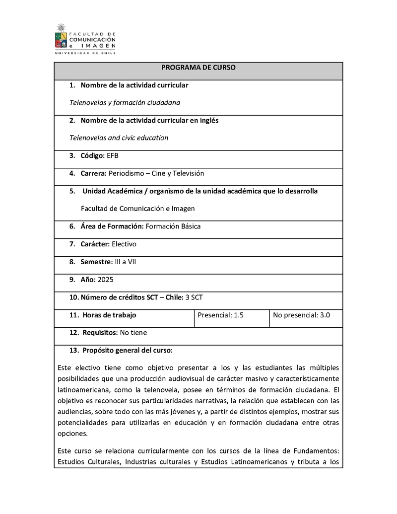 EFB97-1 Electivo de Formación Básica: Telenovelas y formación ciudadana 2025, Segundo Semestre
