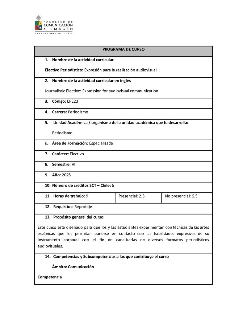 EPE23-1 Electivo Periodístico: Expresión para la realización audiovisual 2025, Segundo Semestre