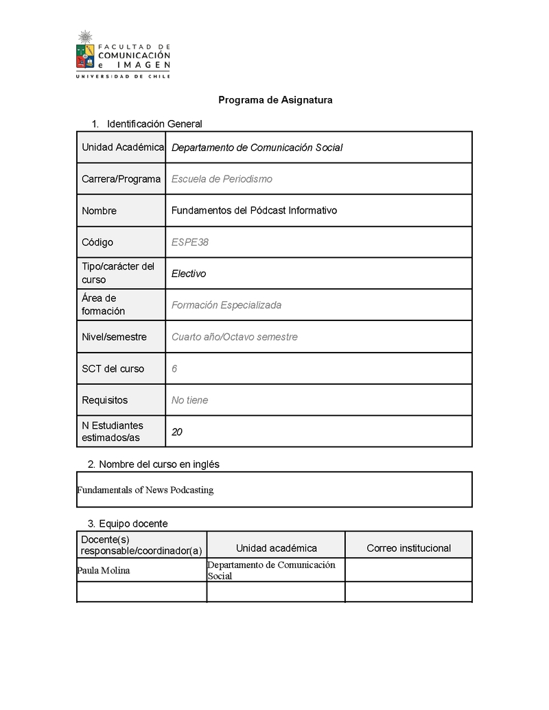 Institución Facultad de la Comunicación e Imagen Facultad de la Comunicación e Imagen