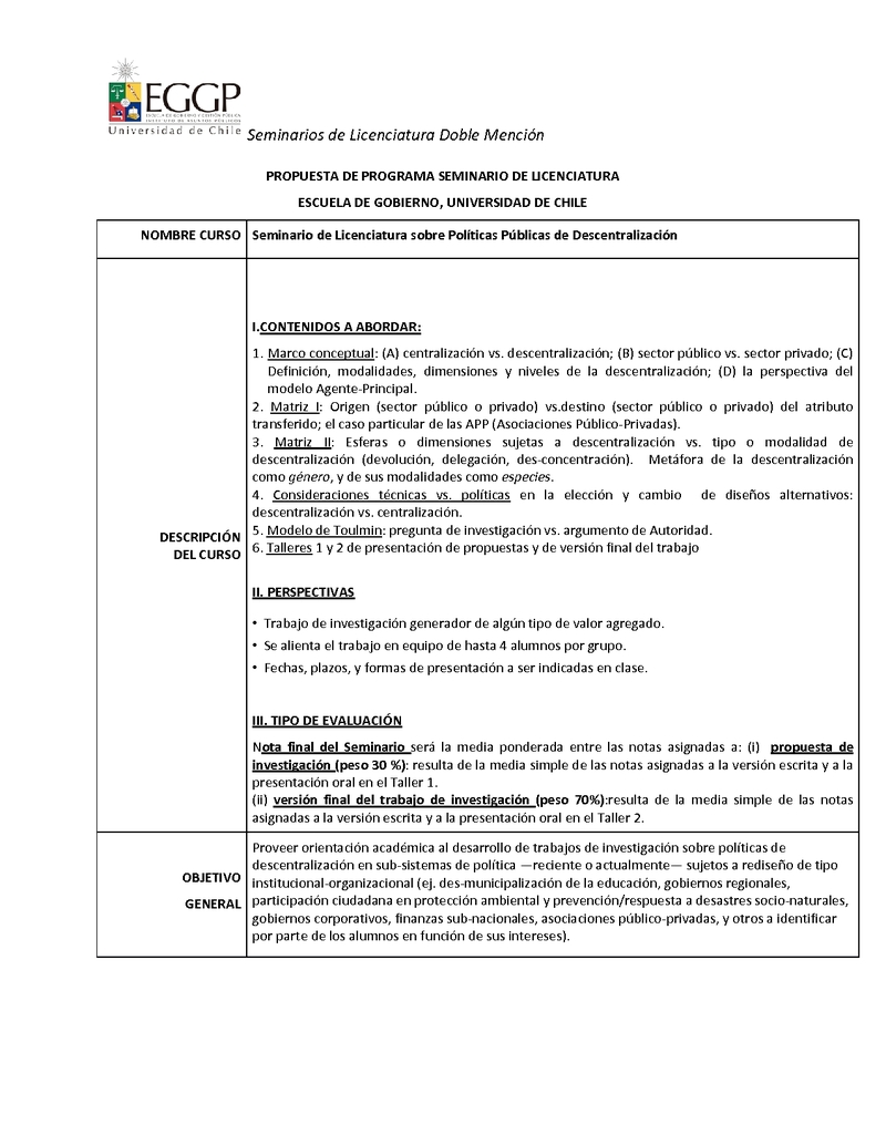 SEM602-1 Seminario Licenciatura Mención Gestión Pública y Ciencia Política 2016, Segundo Semestre