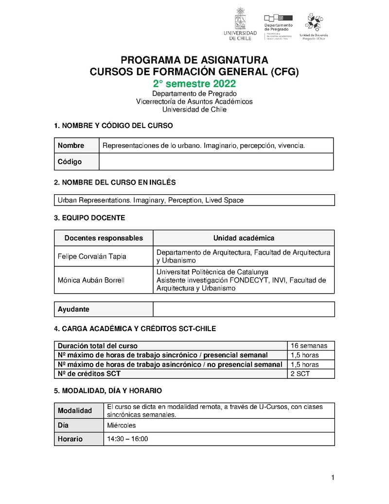 VA-01-0327-93-1 Representaciones de lo urbano. Imaginario, percepción, vivencia 2022, Segundo Semestre