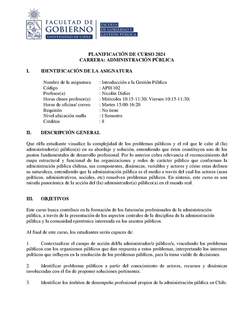 | Descripción | Planificación del Curso Primer Semestre 2024 - Profesor Nicolás Didier | |